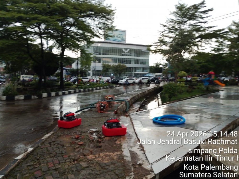 "Melalui pantauan tim Dinas Kominfo kota Palembang, mesin pompa dari Pemerintah kota Palembang juga telah siapkan bahkan 30 menit sebelum hujan turun," kata Fikri salah satu tim Reporter Diskominfo Palembang.